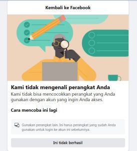 Jika akun email facebook anda sudah diganti, maka silahkan klik Tidak punya akses ke data ini lagi? Setelah itu nantinya facebook akan meminta anda untuk melakukan verifikasi akun melalui perangkat yang terakhir digunakan dengan cara mencoba login pada perangkat tersebut.