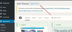 Setelah itu silahkan klik “Upload Theme” yang berada di atas layar anda.