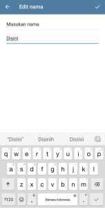 Kemudian tentukan nama yang ingin anda gunakan pada Telegram. Jika nama sudah ditentukan jangan lupa ketuk tanda ceklis untuk menyimpan.