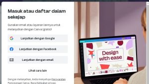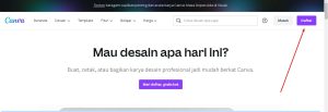 Pada halaman utama silahkan klik daftar. Untuk lebih mudah dalam proses pembuatan akun canva silahkan pilih lanjutkan dengan google.