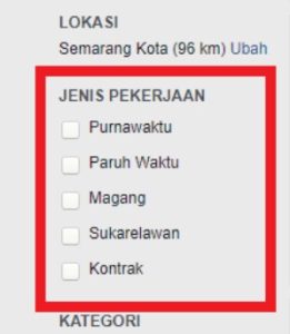 Setelah itu, silahkan tentukan jenis pekerjaan yang anda cari misalnya pekerjaan paruh waktu, magang, kontrak dan lain lain.