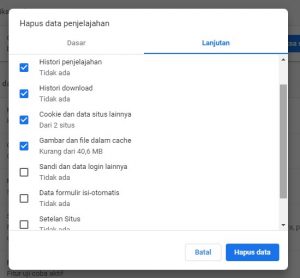 Selanjutnya anda bisa mencentang beberapa riwayat yang ingin anda hapus dari browser dan kemudian pilih bersihkan data.