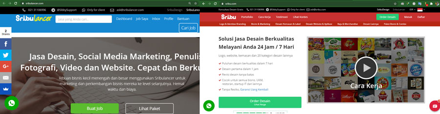 Jika di Sribulancer kita harus memilih ata menunjuk satu orang designer professional untuk mengerjakan logo kita. Di Sribu.com, kita akan langsung mendapatkan lebih dari 99 logo sesuai brief/instruksi yang kita berikan. 99 logo tersebut dibuat dari designer yang berbeda. Jadi kita tinggal memilih 1 logo yang akan kita pakai. Dan cukup bayar 1 logo saja. Pengerjaan lebih cepat dengan garansi uang kembali dan konsultasi Gratis. Untuk revisi desain juga tanpa batas.