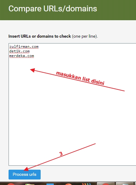 - Masukkan list domain yang ingin kita check, lalu tekan tombol process urls.