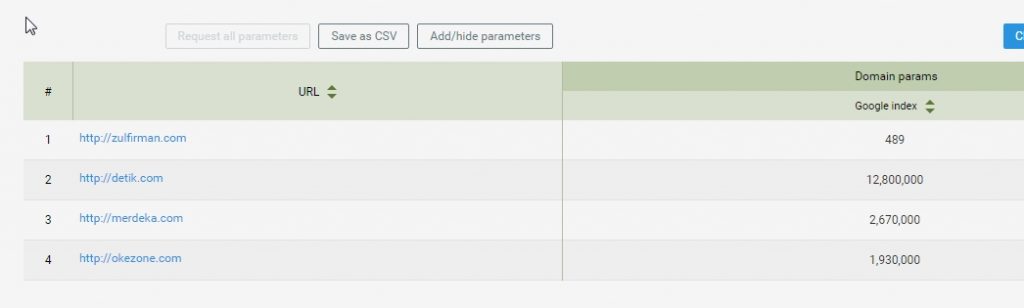 - Maka akan kamu dapatkan jumlah hasil indeks dari masing-masing domain.